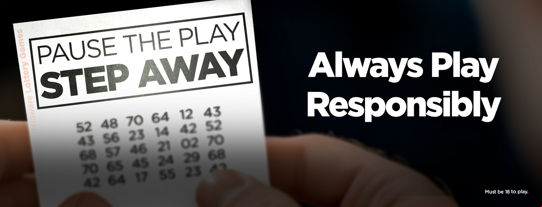 At the Delaware Lottery, we want everyone to enjoy playing Lottery games, and we want everyone to do so responsibly — without spending more than they can afford. When everyone plays responsibly, we all win. For these reasons, the Delaware Lottery joins other lotteries across the country in supporting responsible play. We continue to build on our past efforts to deal with the issue of problem gambling: